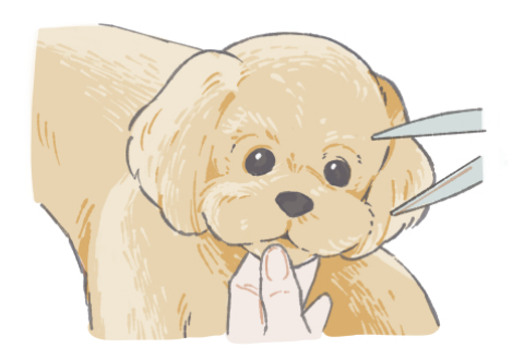 ワンちゃんが痛みを感じない様に、お耳の中の毛を専用ハサミで整えながら、時間を掛けて丁寧にお掃除していきます。