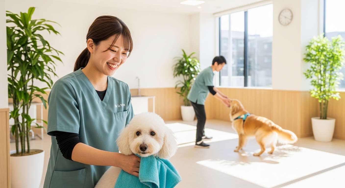 半日だけ出かけたい日や仕事・買い物で家を空ける日に、朝〜昼に一時預かりで預け、滞在中にシャンプーやカットを実施、夕方に迎えに行くと「遊びとケアを両方済ませた状態」で帰宅できます。「お出かけの間にシャンプーも済ませられて助かる」という利用者の声も挙がっています。「半日預けるなら、”遊び+お手入れ”をまとめて頼むと効率的」です。